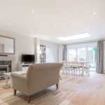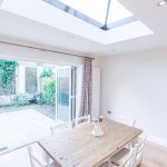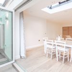 We achieved this by constructing a contemporary single storey rear extension that flows effortlessly into the garden. At its heart are striking bi-folding doors, designed to let natural light flood the interior and create that much-desired indoor-outdoor feel. Aligned perfectly with the dining table, a rooflight was also installed to add an extra layer of brightness from above, creating a vibrant, airy atmosphere for the new open-plan space.