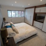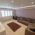 The refurbishment extended well beyond the extension, covering every detail of the property. The bathrooms were redesigned with a contemporary family and en-suite layout, both benefiting from underfloor heating for a touch of everyday luxury. A new Megaflo system was installed to improve energy efficiency and performance, while electrics and media were updated throughout the home. The front porch was also refurbished, ensuring the kerb appeal matched the quality of the interiors.
