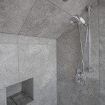 Luxury wet-room style shower with floor-to-ceiling tiling
