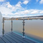 • Composite decking installed on the balconies, surrounded by glass balustrades