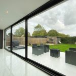 Floor-to-ceiling bifold doors opening onto flush patio area
