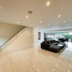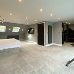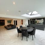 The rear extension added significant ground-floor space, with a large skylight positioned above the kitchen area to bring daylight deep into the home. Throughout the property, we installed wet underfloor heating, ensuring year-round comfort, alongside a full electrical and media upgrade for a modern living experience.
