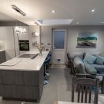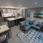 - Kitchen now leads into the living space and a large custom-built kitchen with a living room.